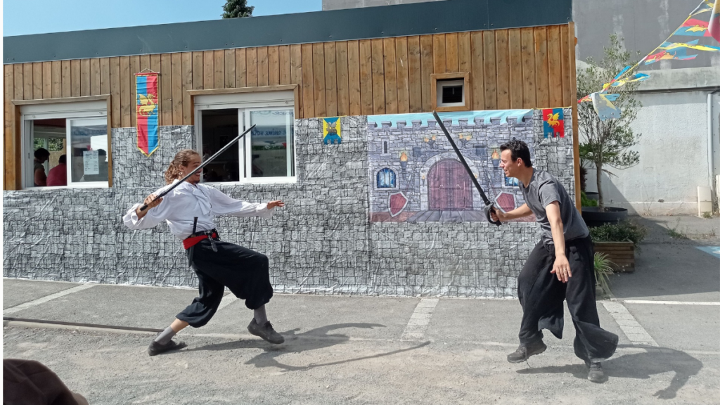 L’escrime ludique est une animation interactive et accessible à tous, qui permet de découvrir l’univers de l’escrime de manière amusante et sans danger. Contrairement à l’escrime sportive traditionnelle, elle met l’accent sur le jeu, la coopération et le plaisir plutôt que sur la performance. Les participants s’affrontent avec du matériel sécurisé, adapté à tous les âges et niveaux, sans nécessiter d’expérience préalable. Cette activité favorise la confiance en soi, la prise d’initiative, la coordination, la concentration et les réflexes.